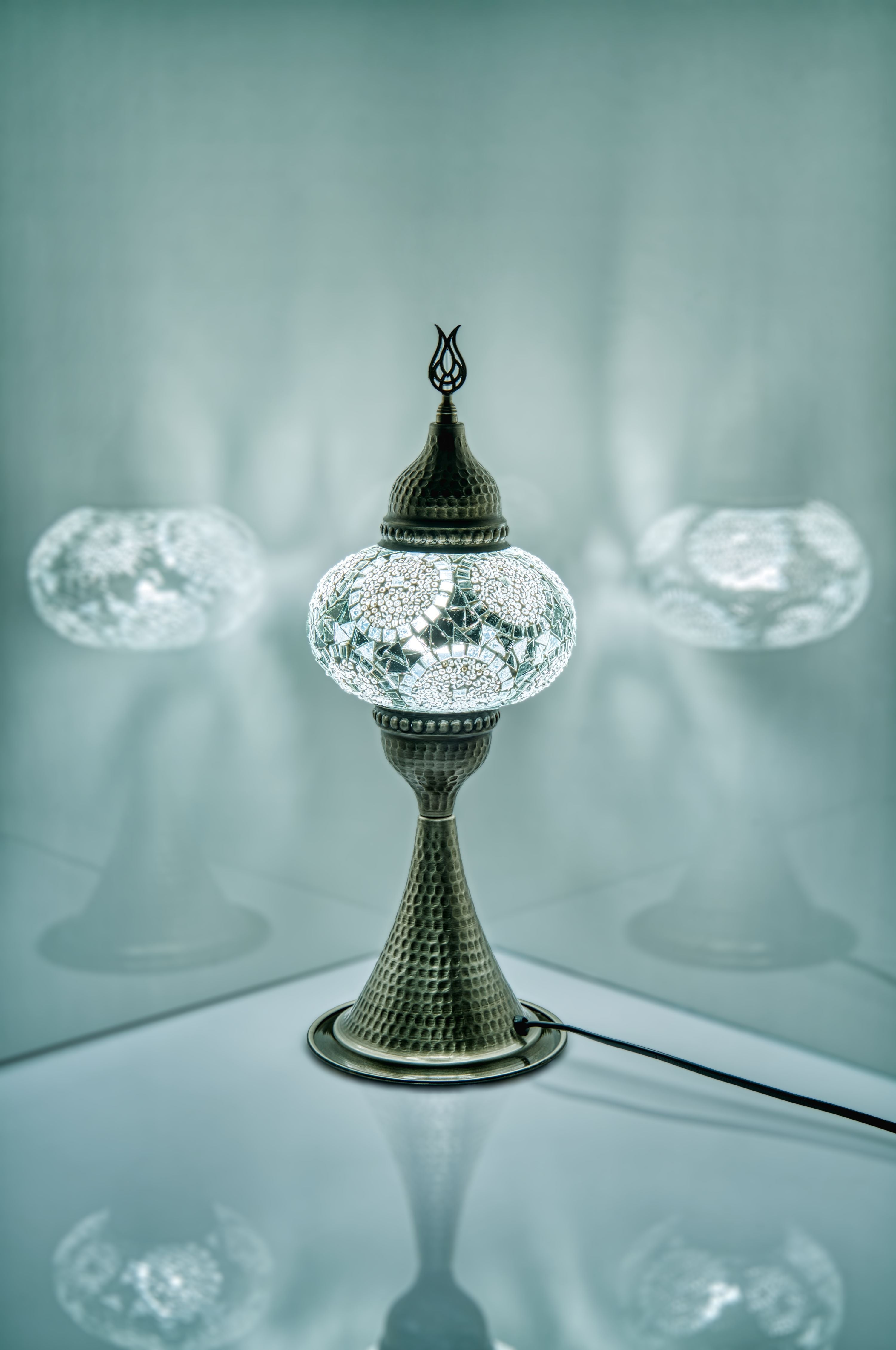 All of Kafthan’s indoor table lamps are handmade by skilled craftsmen with historical techniques from 500 years ago. Indoor Turkish mosaic lamps are custom handmade lamps & they all come with high quality and beauty. With the brass color metal base and color protectors on the mosaics. Features:100% handmade with mosaic glass On/off switch Adapted plug-in to the US (E12 socket) Eligible bulbs: Up to 40W or LED bulbs Bulbs are included!